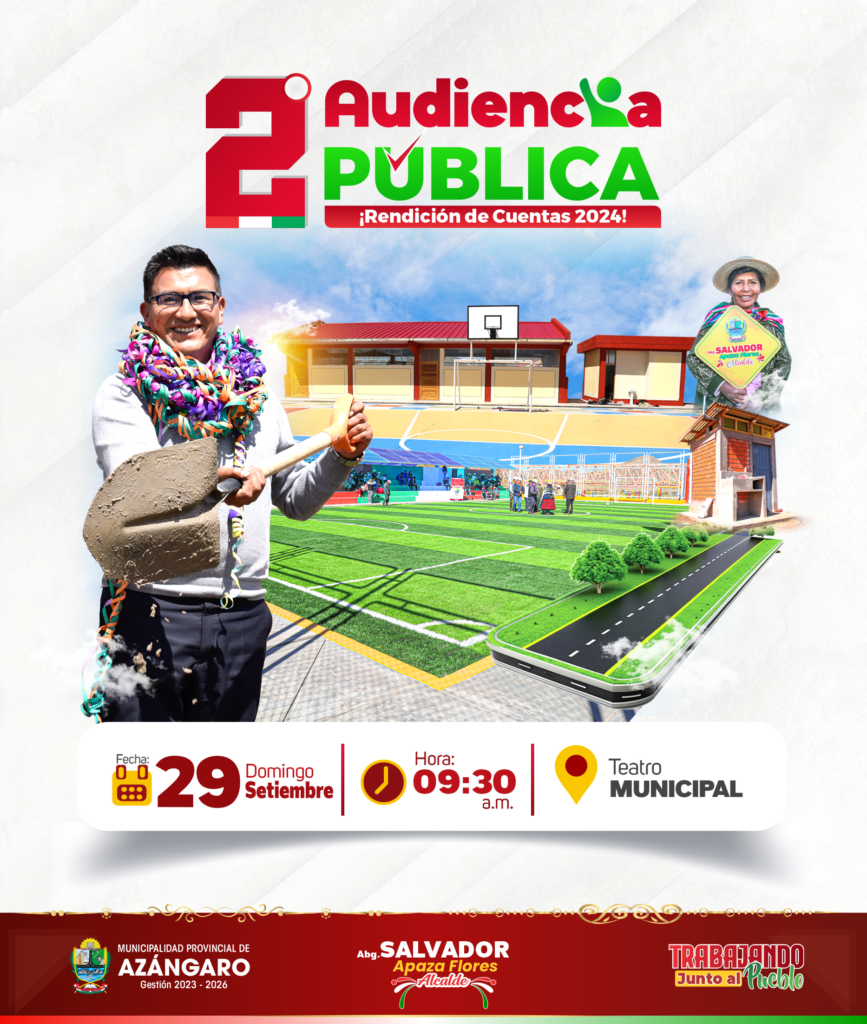 II AUDIENCIA PÚBLICA 2024 DE LA MUNICIPALIDAD PROVINCIAL DE AZÁNGARO. Fecha: 29 de setiembre lugar: teatro municipal Hora: 9.30am